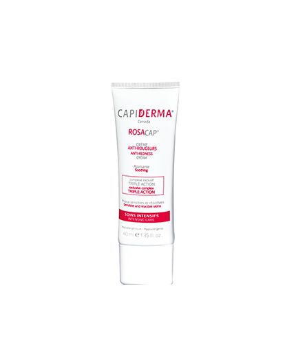 Description: ROSACAP® crème est un soin intensif pour apaiser les rougeurs, les sensations d’échauffement et le tiraillement de peaux sensibles à tendance réactive. Bénéficie d’un complexe exclusif riche en eau de source marine, ainsi que d’extraits de fruits et de plantes à propriétés anti-irritantes et anti-oxydantes afin de réduire l’inflammation cutanée et procurer un apaisement immédiat.